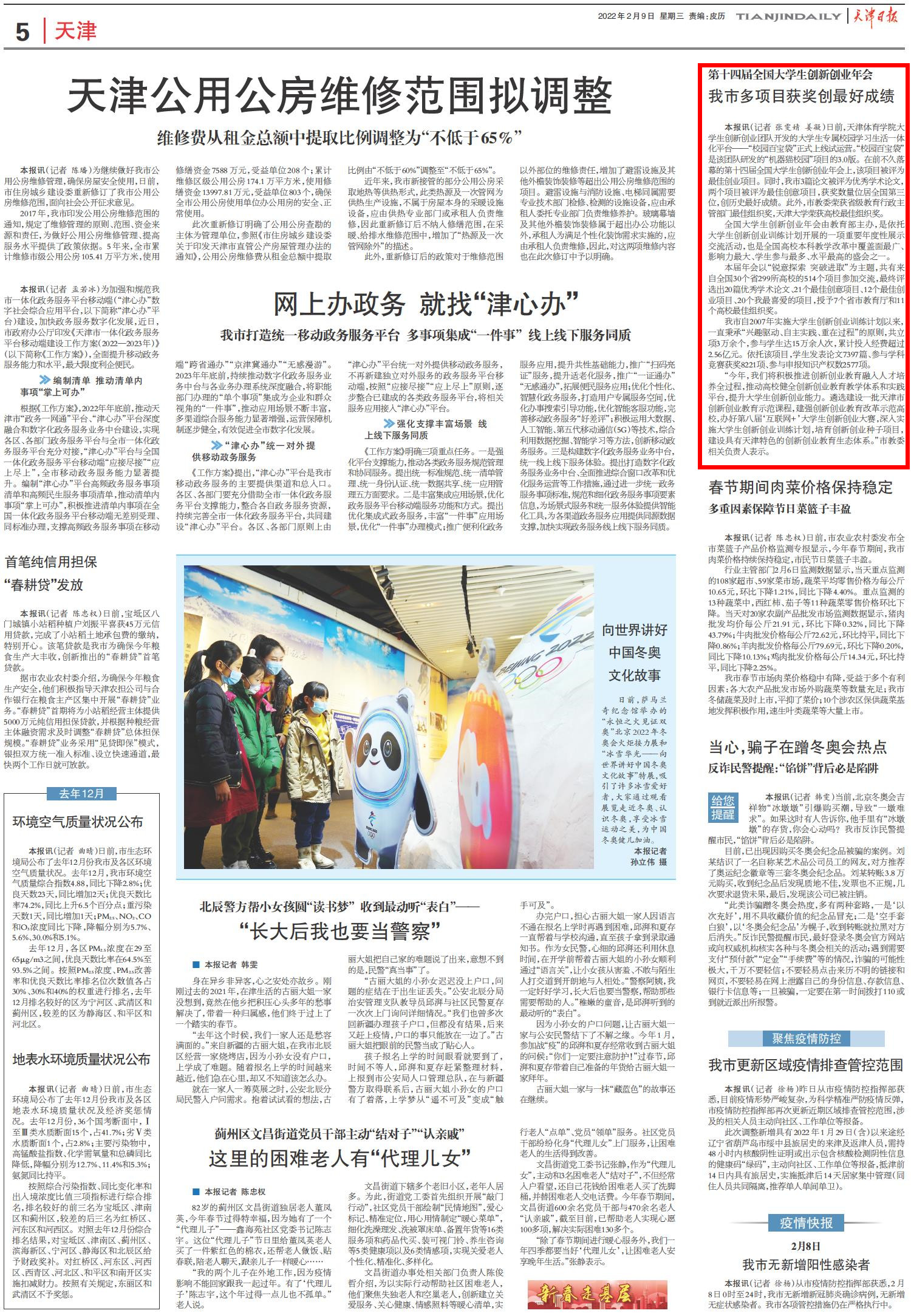 2022年2月9日,《天津日报》第5版报道beat365大学生创新创业项目。现全文转载。