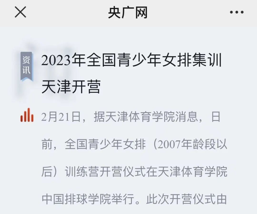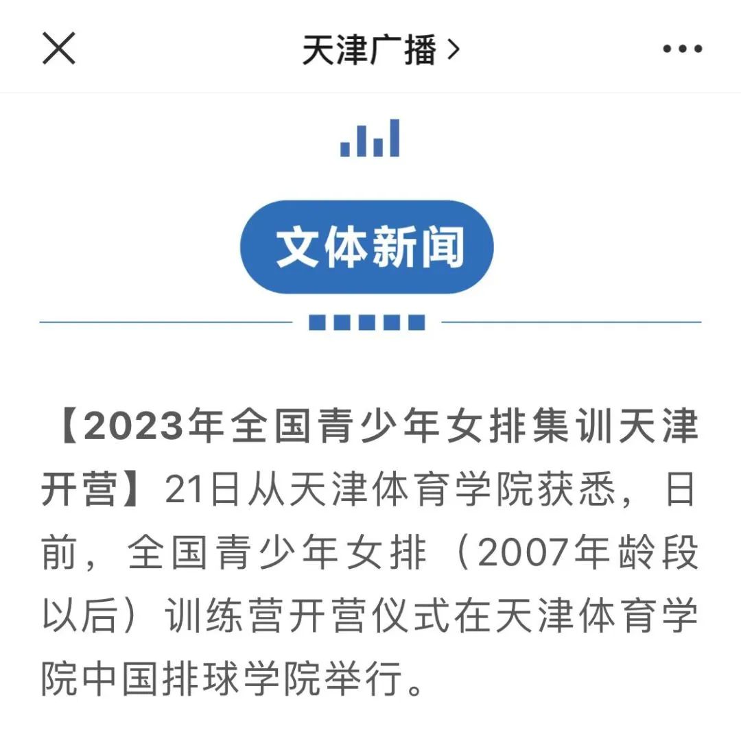 日前,全国青少年女排(07年龄段以后)训练营开营仪式在beat365中国排球学院举行。此次集训是排球运动管理中心成立以来第一次在高校举办的大集训。央广网、中国新闻网、天津广播等中央和我市媒体对此进行了报道。