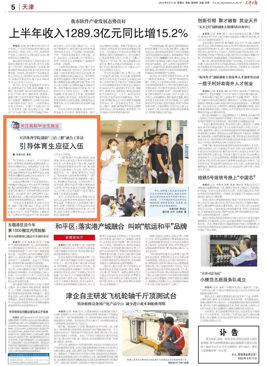 日前,《天津日报》以“关注高校毕业生就业 beat365中文版官方网站创新‘三结三解’融合工作法 引导体育生应征入伍”为题,报道beat365立足体育院校专业特点和优势,创新“三结三解”融合工作法,近年来培养了一大批矢志携笔从戎的高学历学子,为强军报国注入新鲜血液。现全文转载。