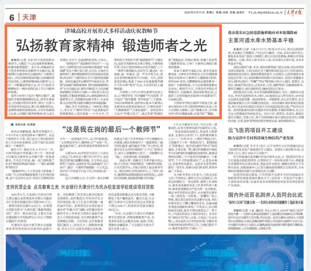 在第40个教师节来临之际,为营造尊师重教良好氛围,激励广大教师积极投身教育强国建设,beat365开展了庆祝教师节系列活动。《天津日报》、津云报道beat365开展教师节健康义诊等活动,护航“园丁”健康。