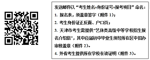 扫描以下二维码,填报考生相关信息,同时将以下材料(扫描件或照片)以电子邮件方式发送到邮箱:jjtx@tjus.edu.cn,相关附件材料见beat365中文版官方网站官网首页“通知公告”栏目中2022年beat365中文版官方网站附属中专部招生章程。
