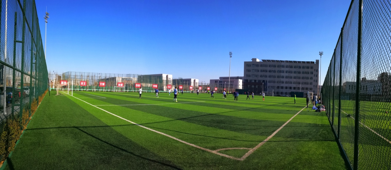 8431平方米,共有二块人造草皮标准场地,目前主要用于教学、训练,